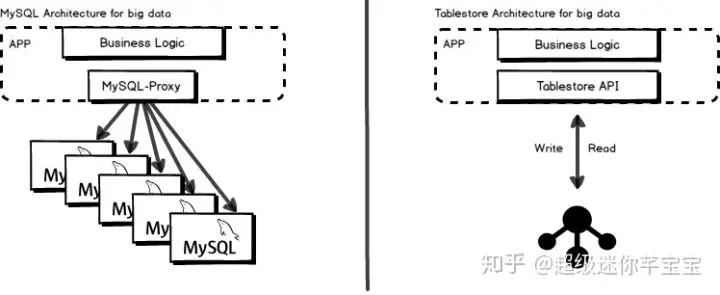 图4 MySQL分库分表 vs Tablestore
