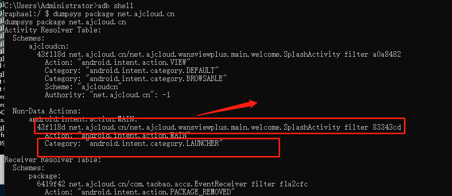 监控dos打印内容,如果是2行内容则其中第一行是appPackage和appActivity,第二行是appWaitActivity
