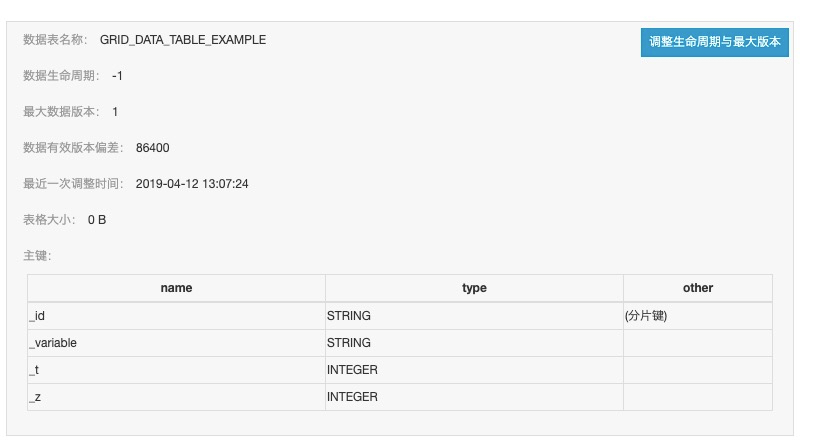 这四列主键列标记一行TableStore中的数据,这行数据需要保存后两维的数据,即一个格点平面。
