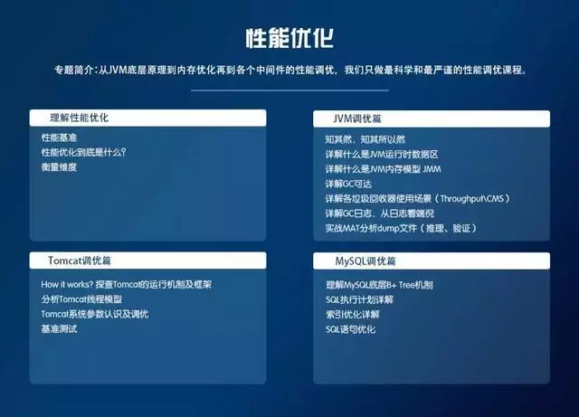 从JVM底层原理到内存优化再到各个中间件的性能优化,我们只做最科学和最严谨的性能优化课程。