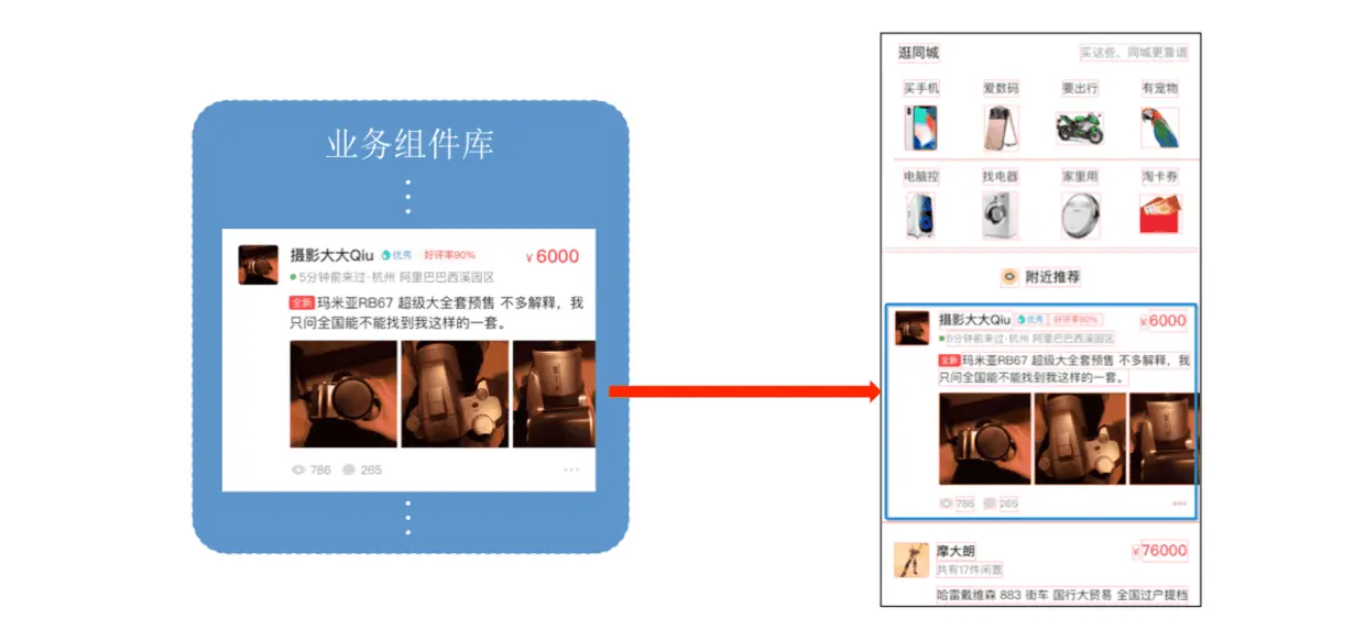 业务组件是指某些特定的卡片,比如一个商品详情卡片,这些卡片会在不同页面出现,而这些卡片的代码一般是已经存在的。我们在拿到一张图片的时候,需要先识别出这些组件,这样这一区块就能复用已有的组件代码,而不会造成很多冗余的一次性代码。