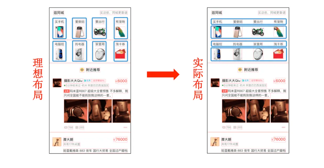 然而实际情况是,我们没有做重复布局的检测,因此布局的时候变成了4行(上图右边)。