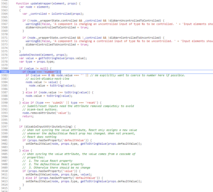 首先确认问题是 setState 未成功,还是 react-dom 未更新。经过调试输出发现, state 已经更新,那么问题应该出在 react-dom 里面,查看 react-dom 代码找到 unstable_interactiveUpdates 方法,通过断点调试,一步步找到问题所在点。