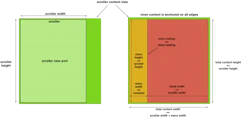 您的第一个任务是将MenuViewController和DetailViewController转换为滑出侧边栏,其中滚动视图包含菜单和详细视图并排。