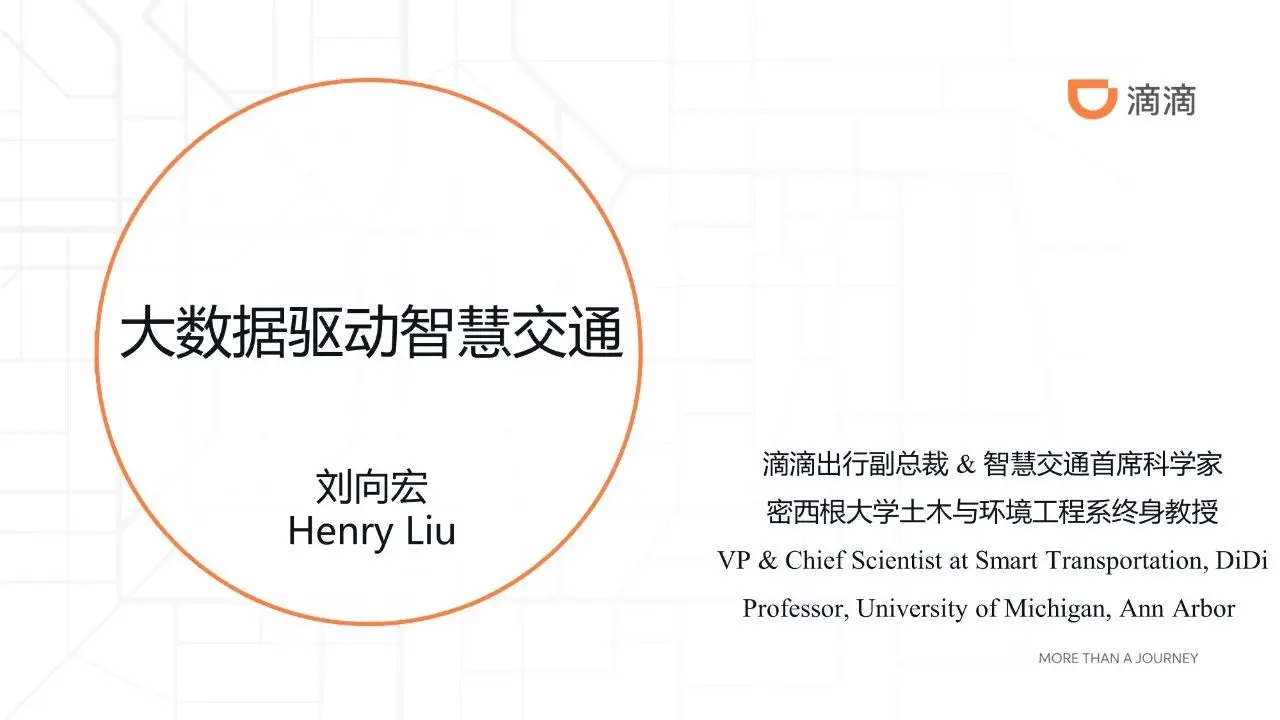 此次由滴滴出行副总裁、智慧交通首席科学家,密西根大学土木与环境工程系终身教授刘向宏(Henry Liu)主讲,希望帮助同学们建立对大数据及人工智能在交通领域应用的基本认识,熟悉交通控制的基本概念,以及通过真实场景和案例助力同学们深入了解大数据下的智慧交通,并一起展望未来交通。