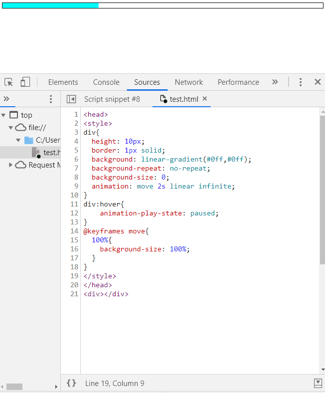 animation-play-state 这个属性非常好用,它可以与负延迟一起实现特殊的效果,比如进度条插件: