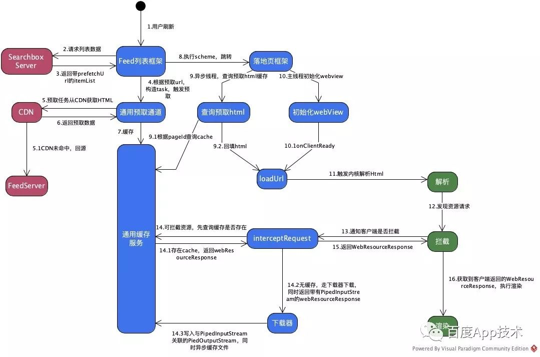 通过上图可以分析第11、12步,WebView对html解析的时候可以发现资源请求并拦截,返回对应的缓存资源并渲染。实际上这个方案在iOS上是行不通的,安卓可以使用自家浏览器,可以魔改浏览器,比如支付宝的UC,百度的T7等。iOS应用内是不允许使用魔改浏览器的,很遗憾,也就是说苹果爸爸开放了什么,我们才能使用什么。