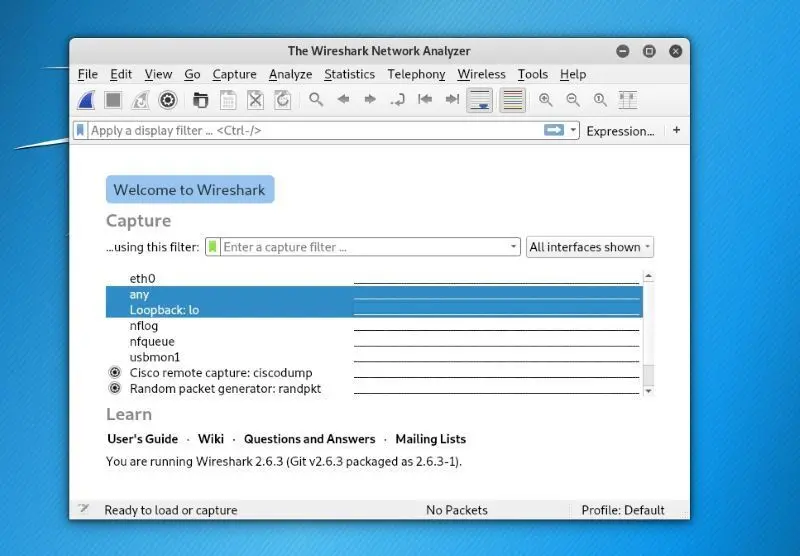 Wireshark 是 Kali Linux 上最受欢迎的网络分析仪。它也可以归类为用于网络嗅探的最佳 Kali Linux 工具之一。