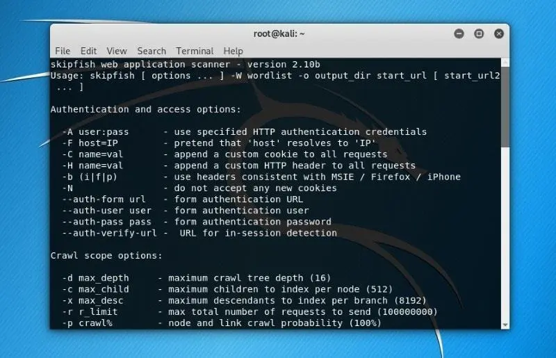 与 WPScan 类似,但它不仅仅专注于 WordPress。Skipfish 是一个 Web 应用扫描程序,可以为你提供几乎所有类型的 Web 应用程序的洞察信息。它快速且易于使用。此外,它的递归爬取方法使它更好用。