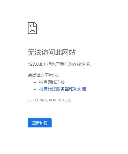 启动之后,我们就可以正常访问页面了。此时如果断开服务,就会出现无法访问此网站。