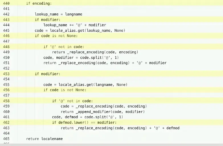 下面这段代码来自于 Python standard library,有很多个 if 判断,Cyclomatic complexity比较高。