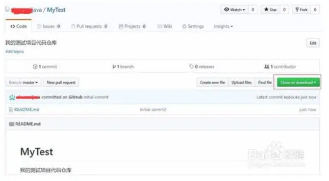 3.创建之后,Code标签目录下面可以把自己的代码上传到这个地方,右侧Clone or download按钮可以看到git仓库地址和下载的zip文件地址。