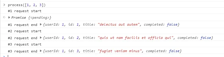 console.log(`#${i} request start`)