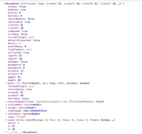 我们知道在触发dom上的某个事件对象的时候,这个对象会包含着所有与事件有关的信息。包括事件的元素、事件的类型以及其他与特定事件相关的信息。
