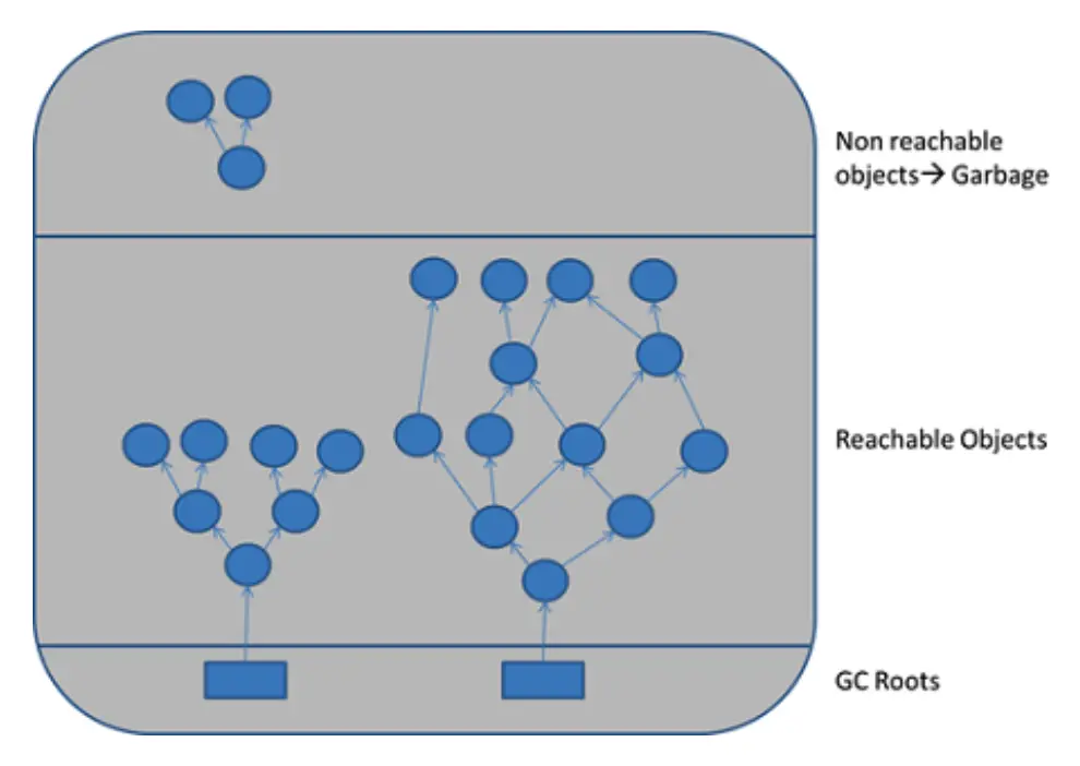 解释一下这张图,每个Android(或Java)应用程序都有一个起点(GC Root),从这个点中实例化对象、调用方法。。一些对象直接引用GC Root,另一些对象又引用了这些对象。因此,形成了引用链,就像上图一样。因此垃圾收集器从GC Root开始并遍历直接或间接链接到GC Root的对象。在此过程结束时,脱离GC Root的对象/对象链将被回收。