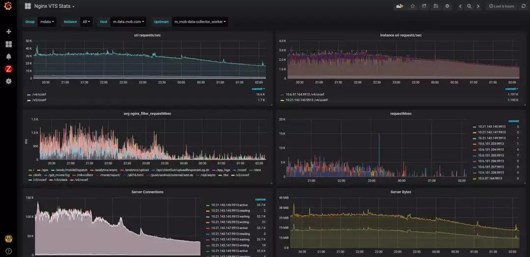 通过以上部署只能拿到默认的指标,生产中可能还会需要监控uri的请求量,监控IP访问情况(同一个IP出现大量访问时可能被攻击),获取不同agent请求量用于分析等,通过vts模块的vhost_traffic_status_filter_by_set_key功能可以自定义需要获取的指标。此处的指标需要加到对应的server配置中