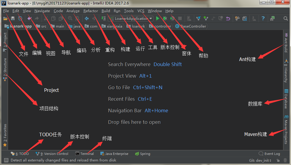 - Status Bar:IDEA右下角的状态栏