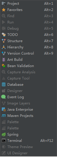 - Tool Windows:一些工具窗口