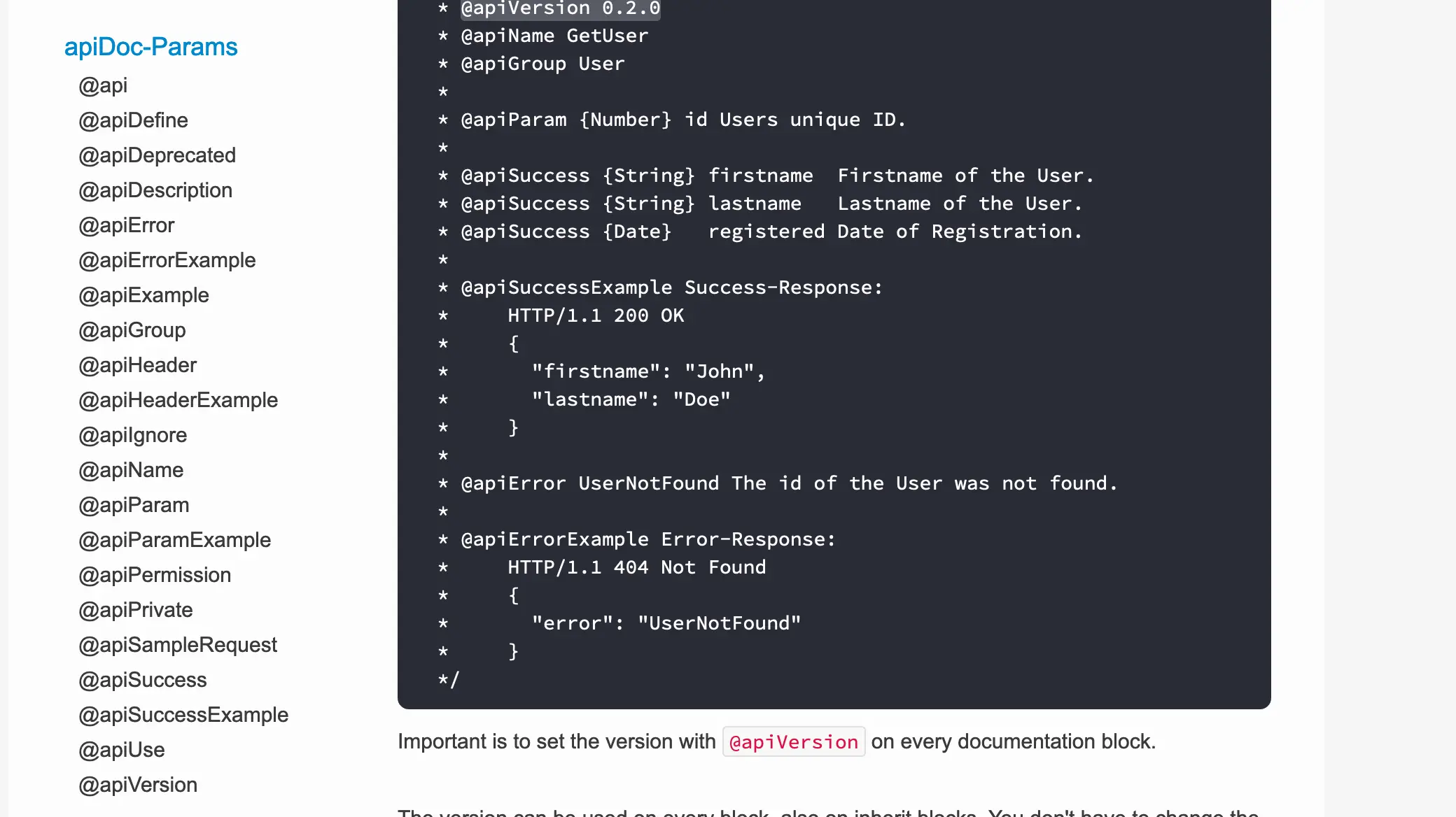 代码虽然有点长,不过大部分都是apidoc的注释,我们可以看到,增加了两个注解,一个@apiParam一个@apiErrorExample,也很简单,一个是参数,一个是错误响应示例。