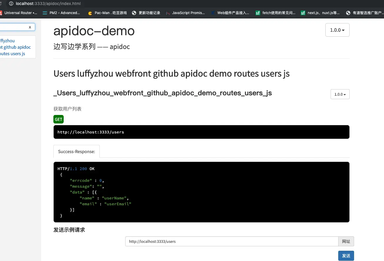将原来的: @apiSampleRequest: http://localhost:3333/users/:id