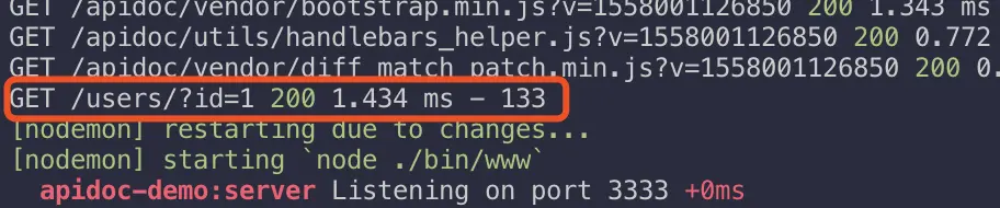 OK,增加完了,我们再来重新生成一下文档并重启服务yarn apidoc && yarn start。
