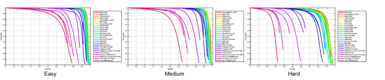 前言:近日,世界最权威的人脸检测公开评测集 WIDER FACE 公布最新评测结果,滴滴 AI Labs 团队联合北京邮电大学PRIS团队提出的人脸检测 DFS 算法,在 WIDER FACE 的 Easy、Medium 和 Hard 三个评测子集的六项评估结果中, 超过了国内外众多科技公司和高校院所,取得了五项第一、一项第二的好成绩,充分彰显了滴滴在人脸检测领域的创新能力。