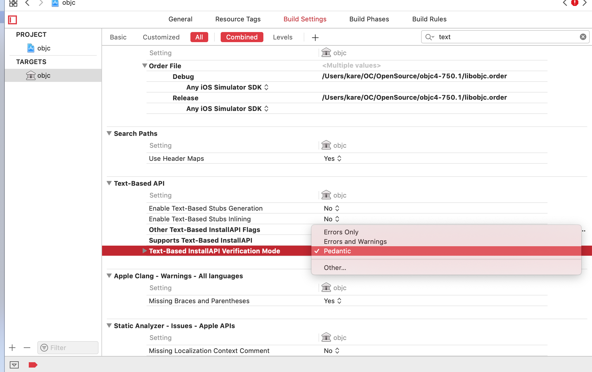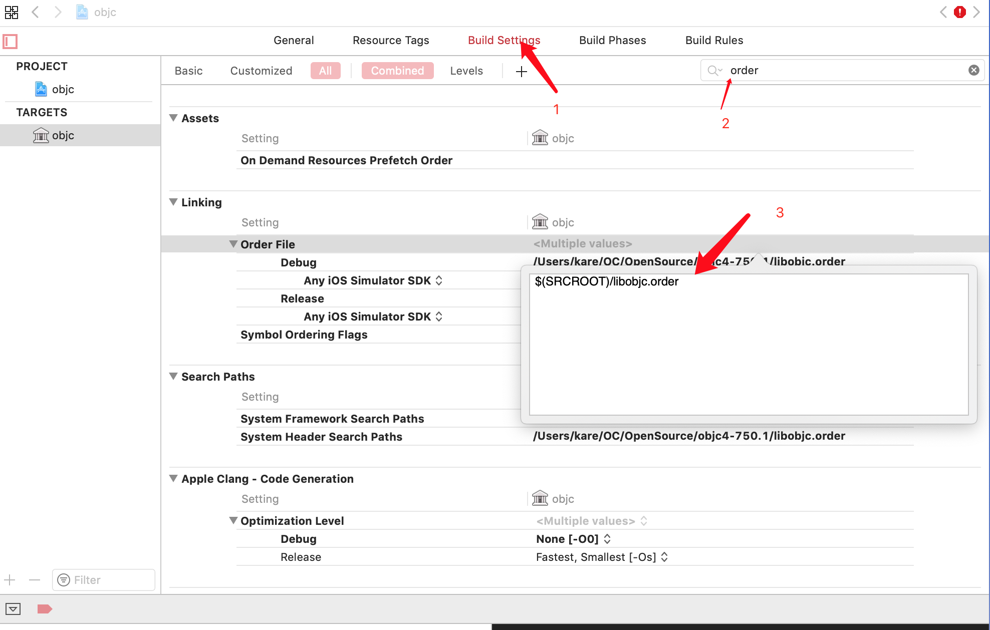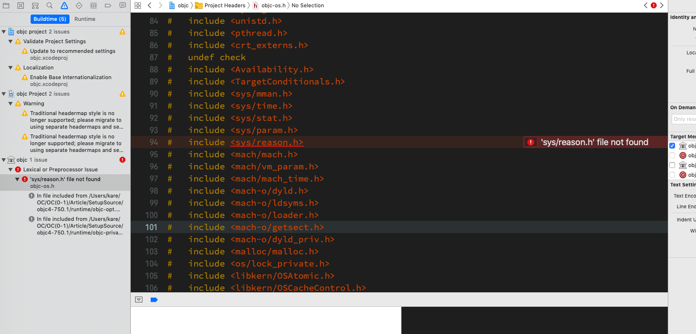 ld: warning: -F path '/Users/kare/OC/OpenSource/objc4-750.1/libobjc.order' is not a directory