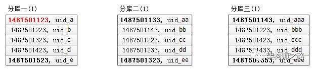 (1)分库依据patition key是 uid;