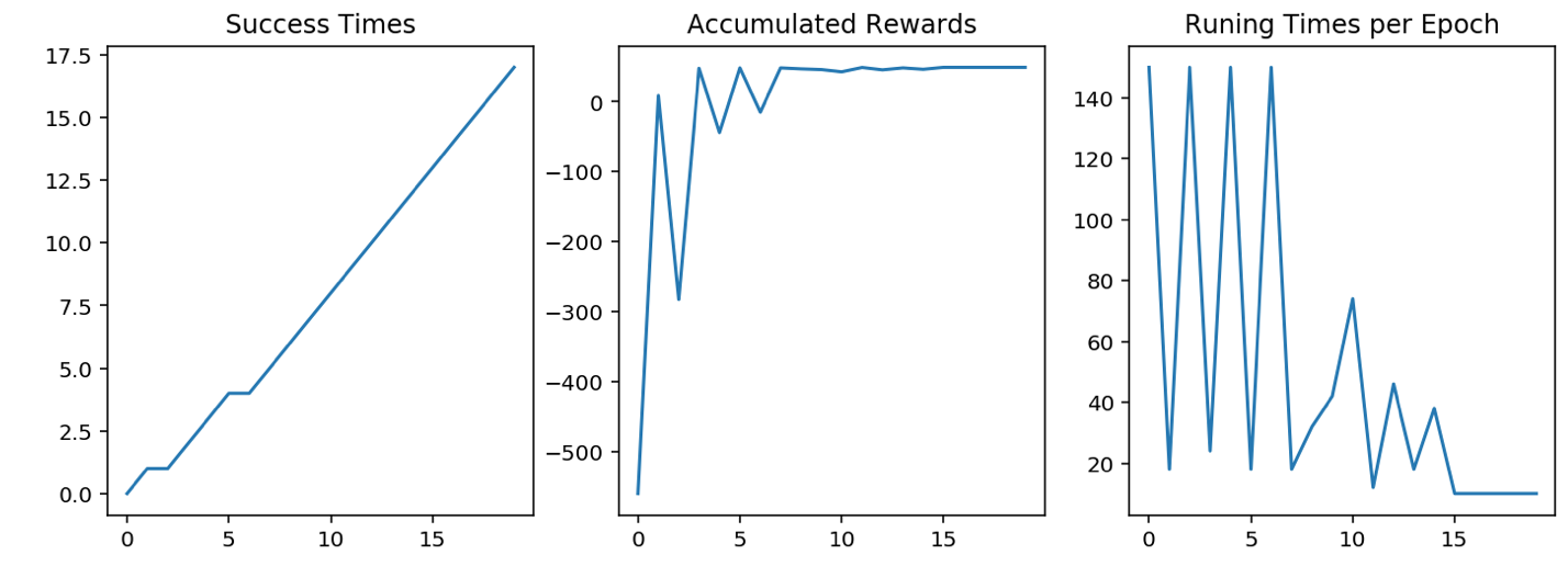 Running Times per Epoch 代表在每次训练 epoch 中,小车训练的次数(到达终点就会停止该 epoch 转入下次训练),这应当是一个逐步递减的图像。