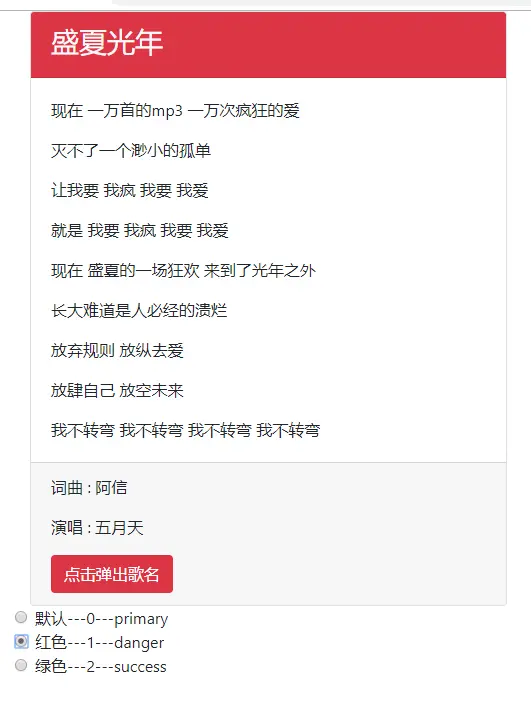 <a href="#" :class="['btn', 'btn-'+curcolor.cc]" @click="func">点击弹出歌名</a>
