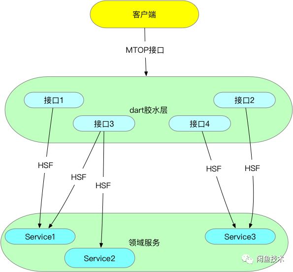 胶水层dart应用以HTTP协议方式作为MTOP接口提供给客户端调用,往下使用HSF从Java应用中获取数据。 通常先定义并开发好领域服务,然后再与客户端对接开发出接口,领域服务提供的接口,包含了获取基础数据的所有方法,开发好之后,很少发生变化;胶水层获取领域服务提供的数据,对数据进行加工、裁剪、组装,输出为客户端能够解析的视图数据,客户端解析、渲染、展示为页面。胶水层的代码大致可以分为:获取数据,然后数据处理和组装。抽象出代码模式如下所示: