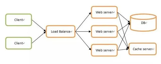 A:分布式可繁也可以简,最简单的分布式就是大家最常用的,在负载均衡服务器后加一堆web服务器,然后在上面搞一个缓存服务器来保存临时状态,后面共享一个数据库,其实很多号称分布式专家的人也就停留于此,大致结构如下图所示: