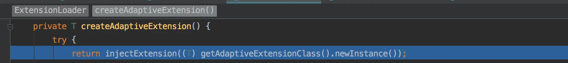 只要不是ExtensionFactory都会走到这里,得到ExtensionFactory的adaptive扩展(AdaptiveExtensionFactory)。这样一个ExtensionLoader就new好了。