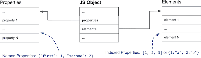 V8里面所有的数据类型的根父类都是Object,Object派生HeapObject,提供存储基本功能,往下的JSReceiver用于原型查找,再往下的JSObject就是JS里面的Object,Array/Function/Date等继承于JSObject。左边的FixedArray是实际存储数据的地方。推荐看原文《从Chrome源码看JS Object的实现》