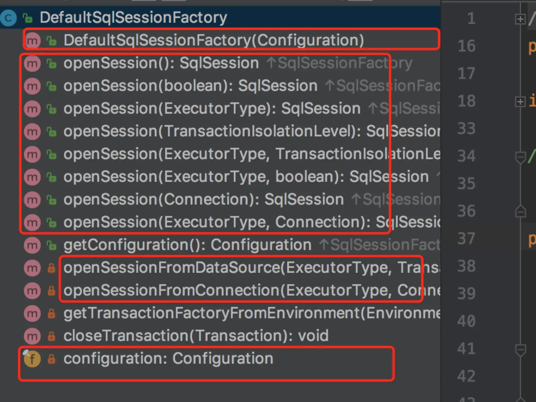 SqlSessionFactory是个接口,有两个实现类,默认是DefaultSqlSessionFactory。先看下该类的结构