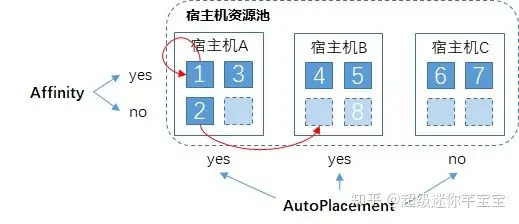 - 宿主机A、B为项目间共用资源,允许自动部署(AutoPlacement=yes)