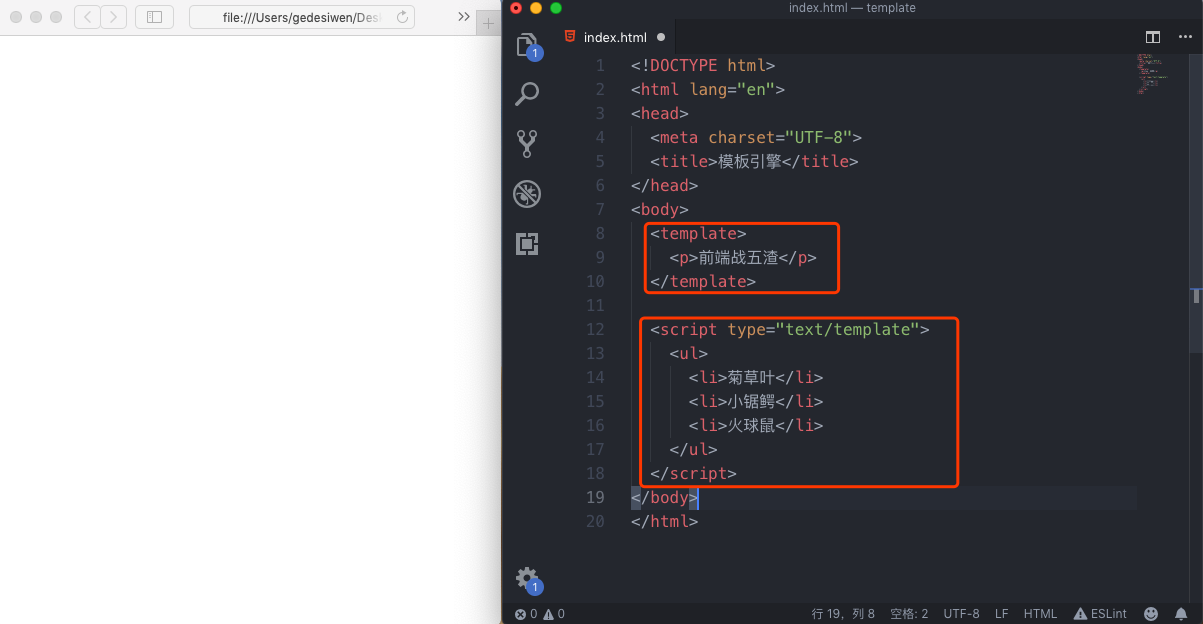 可能很多小伙伴没见过<script type="text/template">script标签的type竟然还有这种属性,相对于script标签的一个属性值,<template>标签写过vue的都见过,都知道是可以在里面写上div等标签的。那这两个标签到底有什么用呢。来看