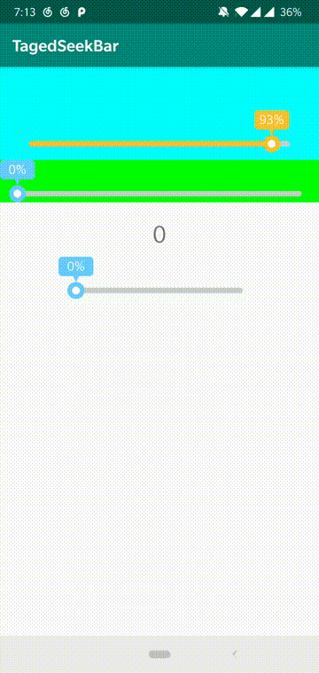 TaggedSeekBar 在 SeekBar 的基础上加了一个显示进度值的标签,也可以当做 ProgressBar 使用,最终效果如下(压缩的比较惨,重在领会精神):