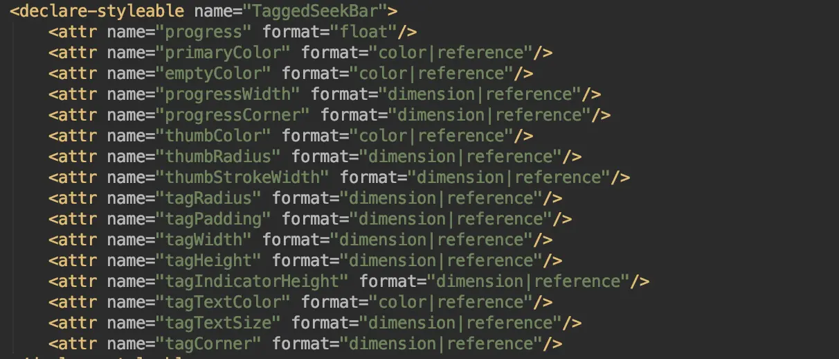 当多个自定义 attr 的 name 冲突时,可以将 attr 的定义提取到外层,结构是这样的:
