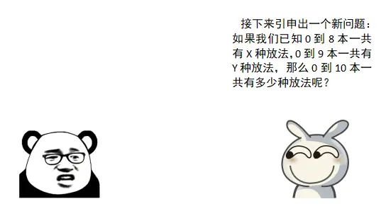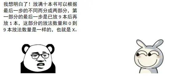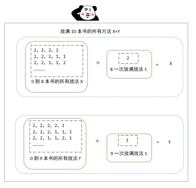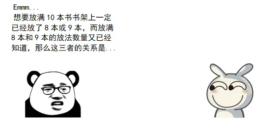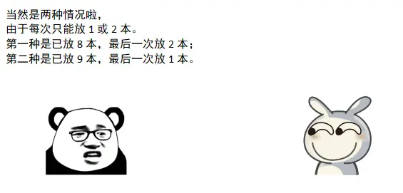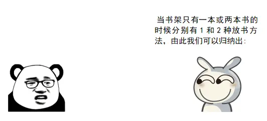 (相当于我们把放书的最后一步分为放2本和放1本两种情况)