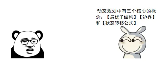 还记得我们之前提到的动态规划三要素【最优子结构】【边界】和【状态转移公式】吗?