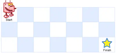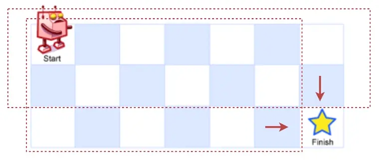机器人每次只能向下或者向右移动一步。机器人试图达到网格的右下角(在下图中标记为“Finish”)。