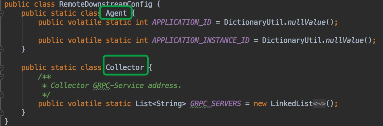 打开 RemoteDownstreamConfig ,我们会看到拆分了 Agent / Collector 两小类。如下图 :