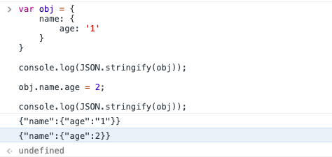 使用 JSON.stringify,原理是将它转换成字符串输出,这样就不会在引用原有的对象的内存,如下所示