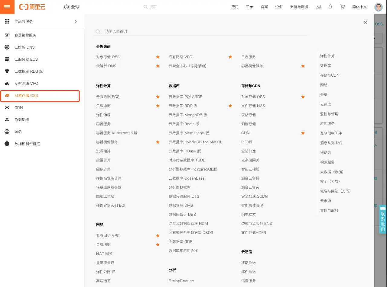 登录阿里云账号,进入对象存储界面,如图所示。