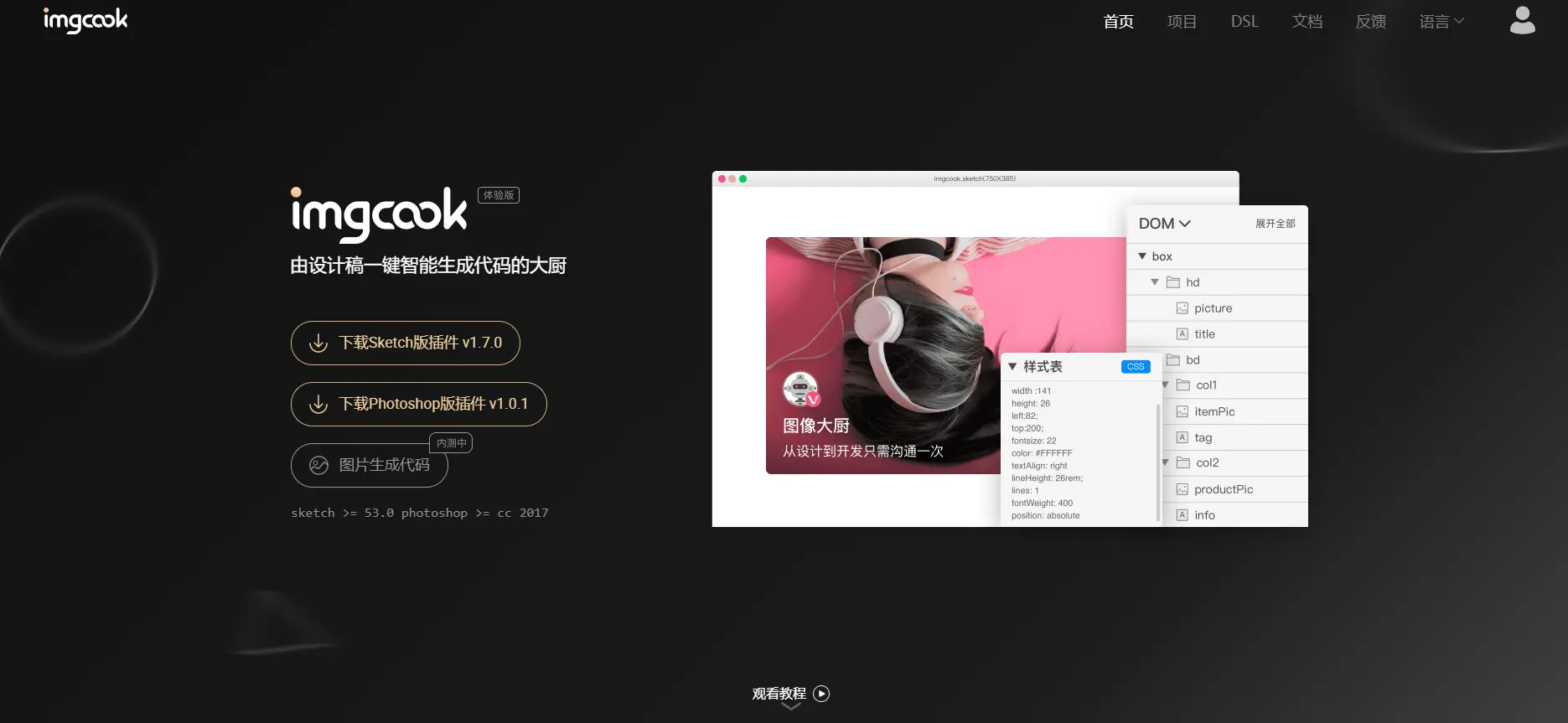 官网 由设计稿一键智能生成代码的大厨
