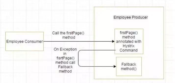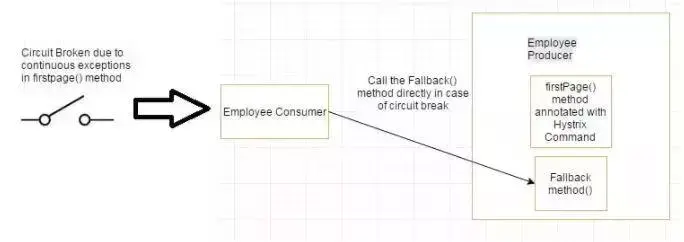 如果firstPage method() 中的异常继续发生,则Hystrix电路将中断,并且员工使用者将一起跳过firtsPage方法,并直接调用回退方法。 断路器的目的是给第一页方法或第一页方法可能调用的其他方法留出时间,并导致异常恢复。可能发生的情况是,在负载较小的情况下,导致异常的问题有更好的恢复机会 。