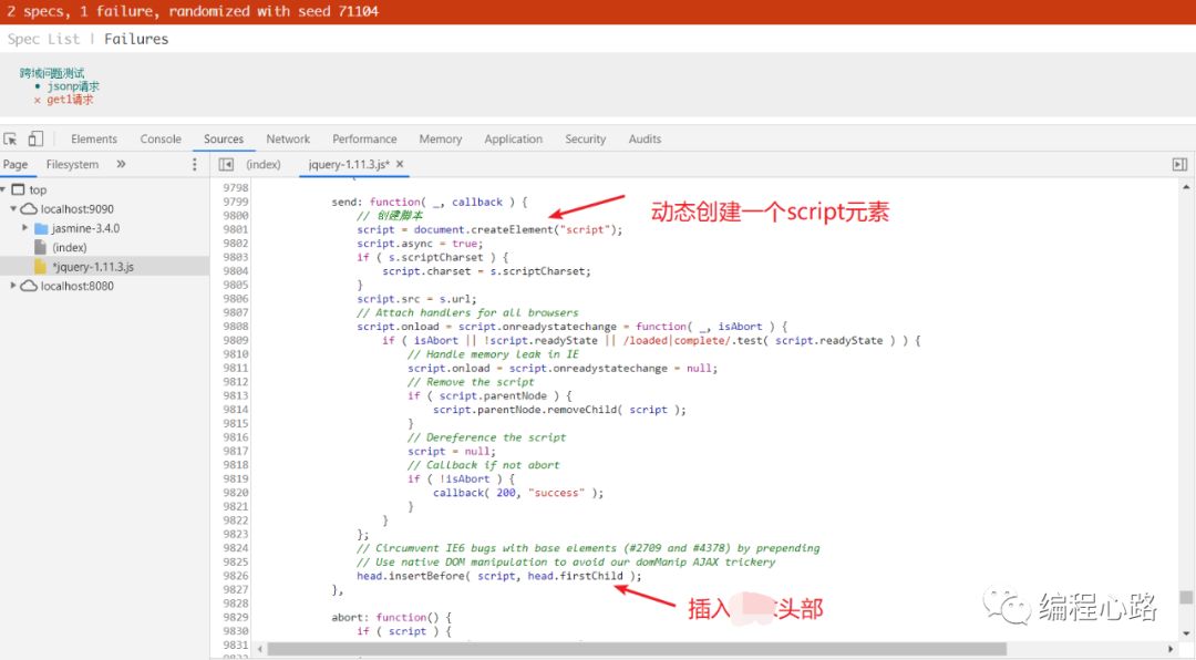 可以在浏览器中查看 Jquery 源码来验证 JSONP 是否将请求包装成了 script 脚本。