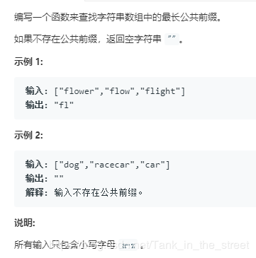 下面刷题刷到第十四题,最长公共前缀。先来看看题目: