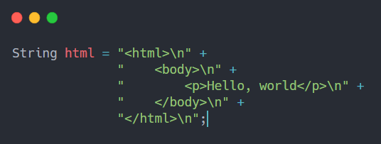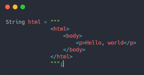 将文本块添加到Java编程语言。文本块是一个多行字符串文字,可以最大限度地减少转义常见字符(如双引号和换行符)的需要。